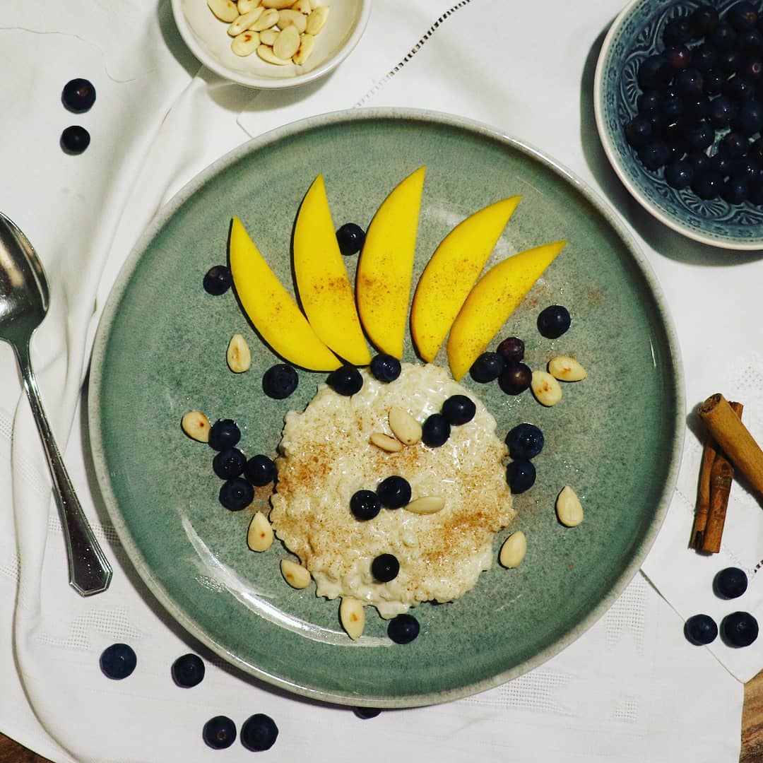Milchreis mit Mango und Blaubeeren